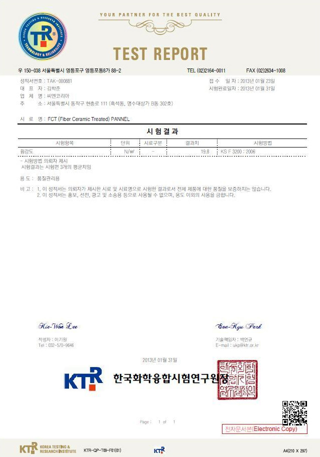 포틀랜드시멘트, 섬유소, 규사, 석분, Fiber, Fly Ash 등의 성분으로 구성된 고강도 시멘트판넬의 표면에 무기질 세라믹을 도포하여 고온에서 열처리한 고강도칼라 시멘트판넬입니다.